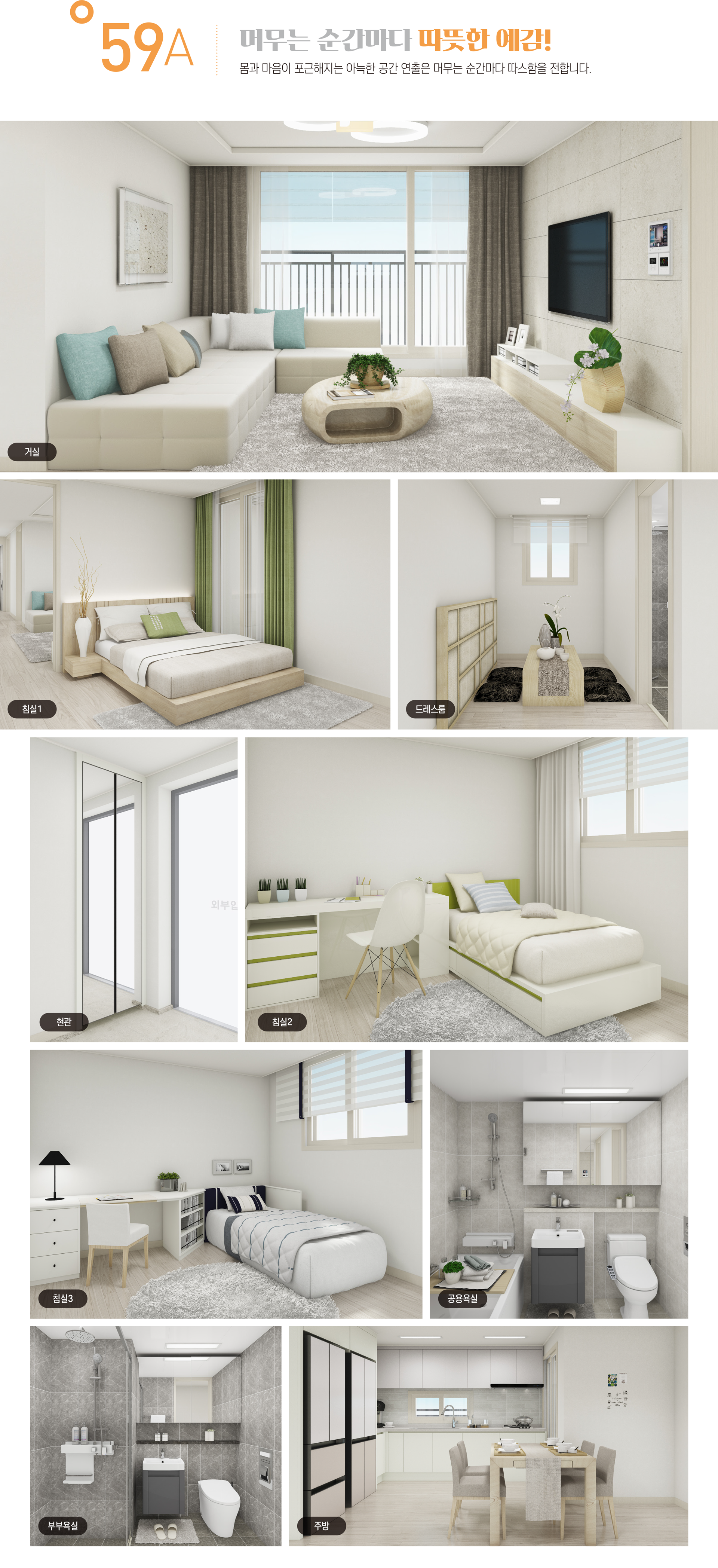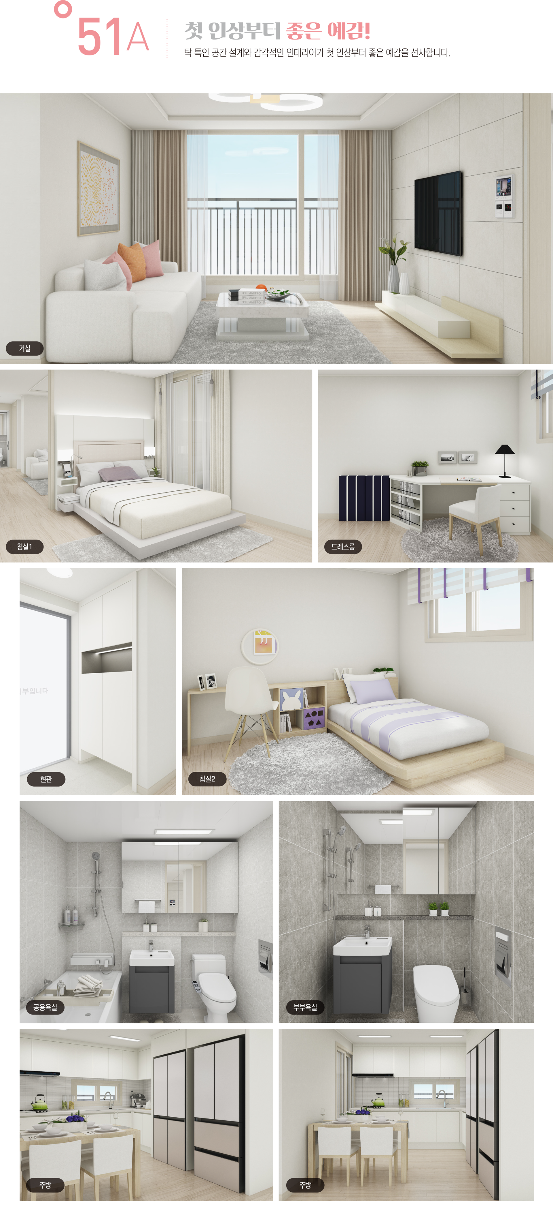 - ※ 팸플릿, 견본주택 및 홈페이지에 적용된 마감재는 실제 시공시 유사색상 및 무늬를 지닌 동등 이상 성능의 타제품으로 대체 시공될 수 있습니다.